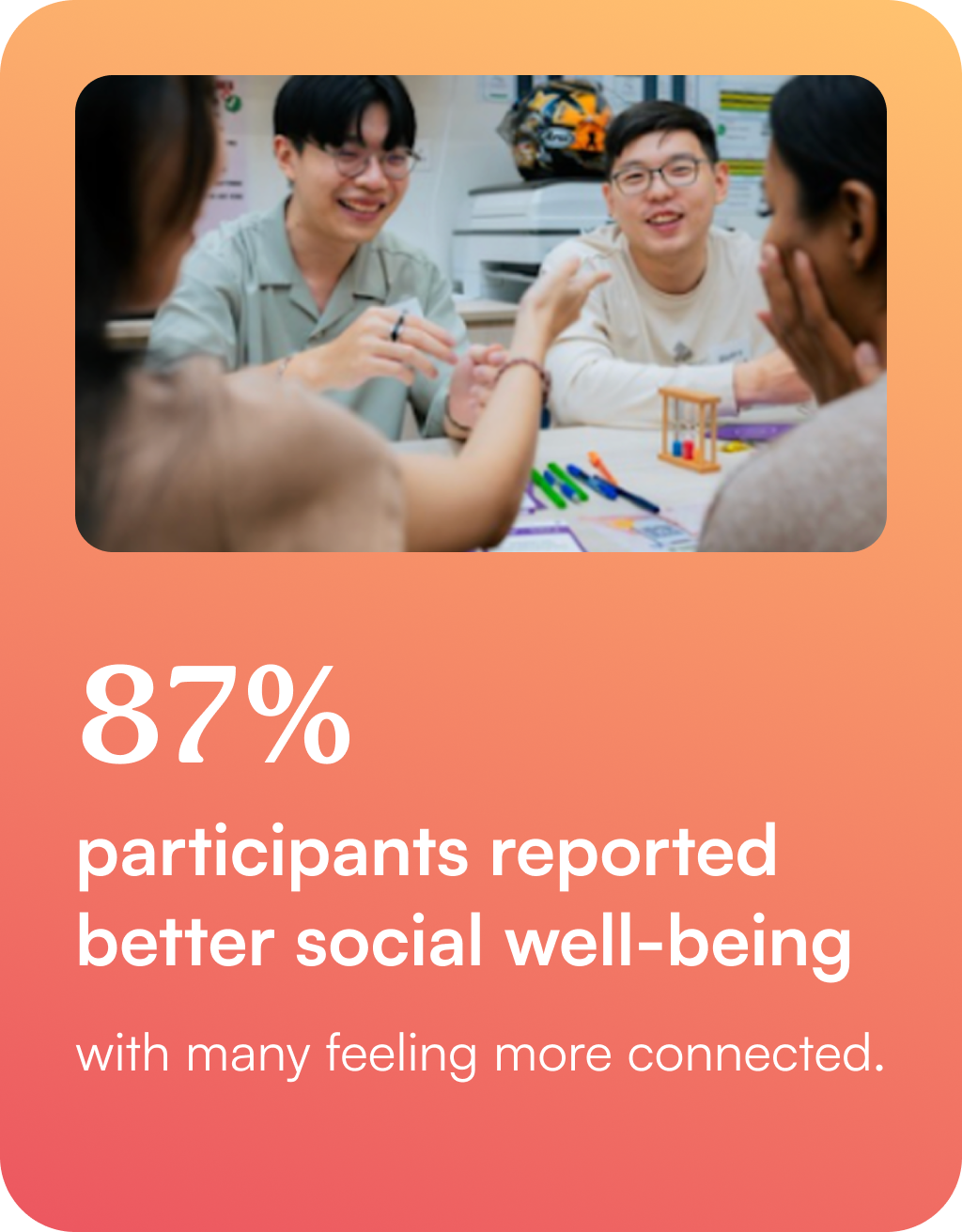Closer to home, the National Youth Council’s 2024 report highlights a worrying trend: nearly 20% of youths between 15–34 years old in Singapore have only one or zero close friends. As social circles shrink and become less diverse, young people are increasingly disconnected—
