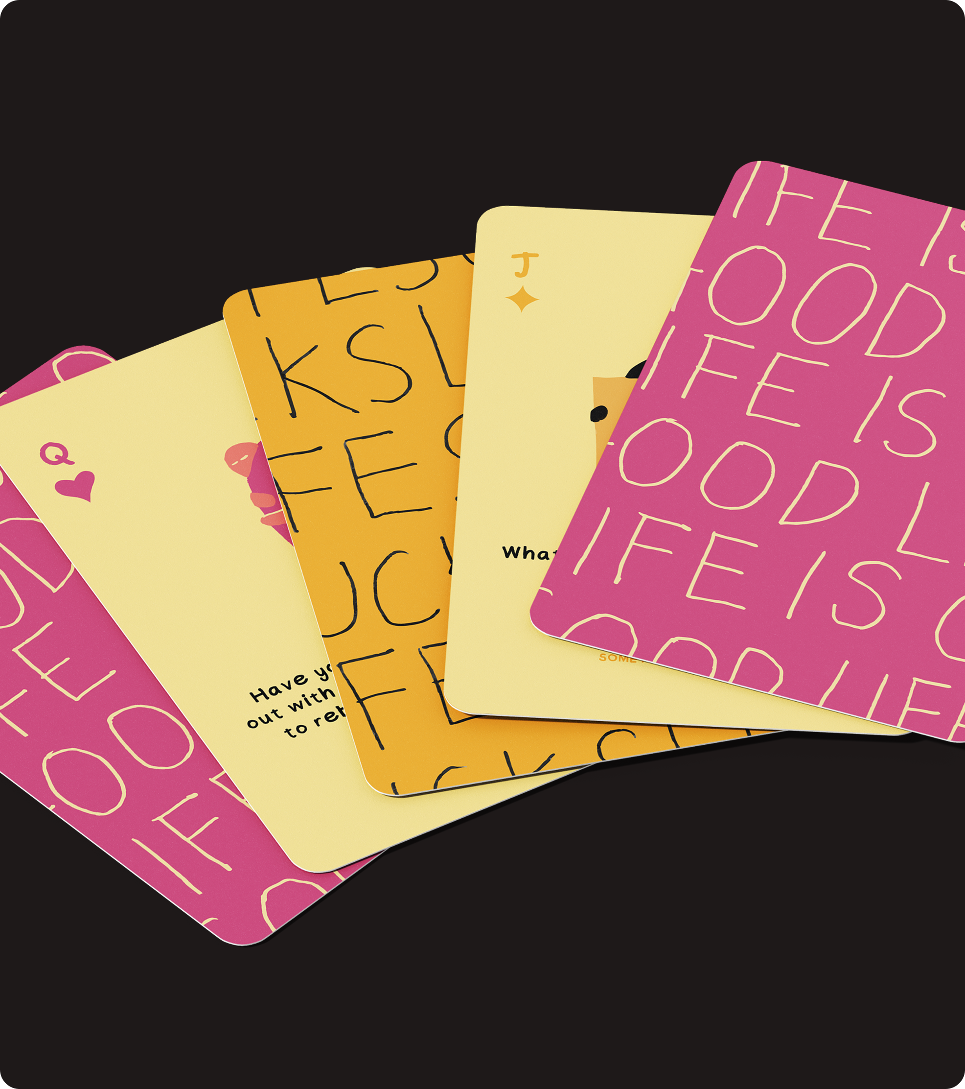 “I loved that the deck had variety. Played it with colleagues and there was both humour and real depth. Also, LOVED the illustrations, v relatable.”